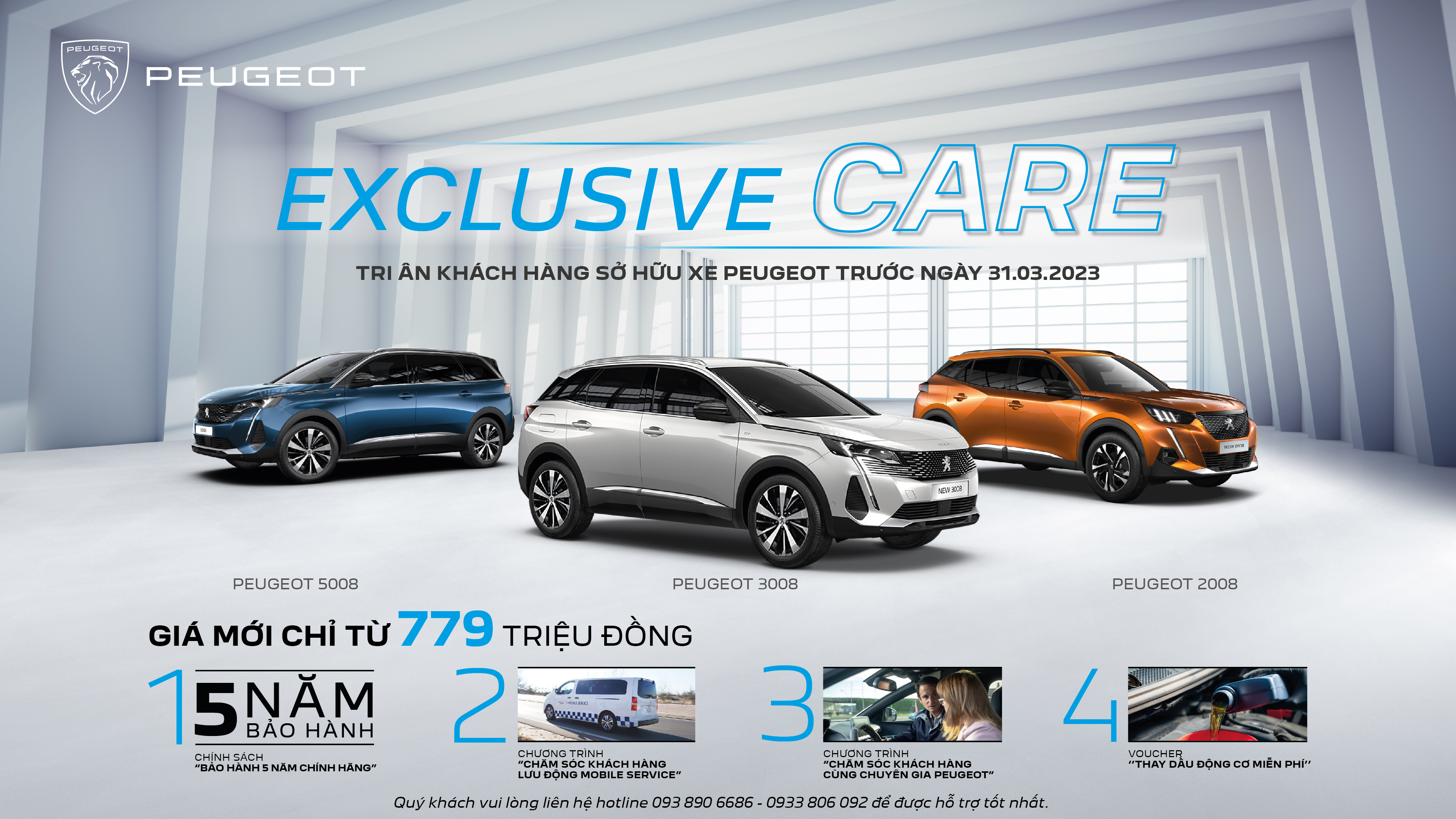 Hướng tới kỷ niệm 10 năm hợp tác giữa THACO AUTO và thương hiệu PEUGEOT. Peugeot Thái Nguyên xin gửi tới Quý khách hàng Chương trình tri ân khách hàng "PEUGEOT EXCLUSIVE CARE” :